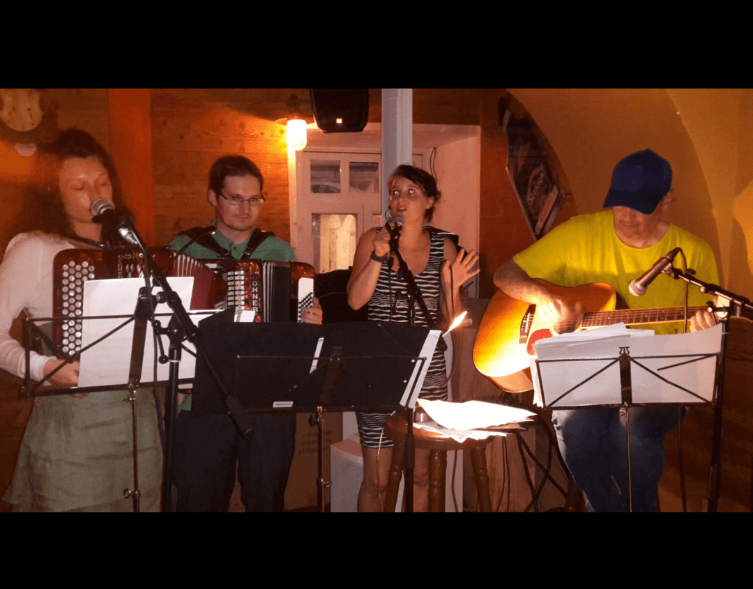 Pater Werner Hebeisen, Robert Staudiger, Silvia Mayer und Akkordeon Angelina.
