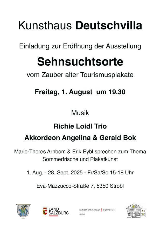 Ort: Kunsthaus Deutschvilla, Eva-Mazzucco-Straße 7, 5350 Strobl